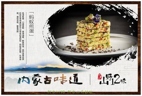蚂蚁煎蛋原料选用优质的林区笨鸡蛋和阿尔山特有的黑蚂蚁。其营养价值补肾益精,通经活络,解毒消肿。菜品色泽金黄,口感外焦里嫩,略带微酸, 主要是蚂蚁有蚁酸。
