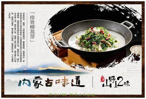 选自于阿尔山林区改良的二代野猪排和阿尔山当地的野菜柳蒿芽。色泽:汤色奶白、脆绿。口味:鲜香微涩,荤素搭配,肉香纯正。