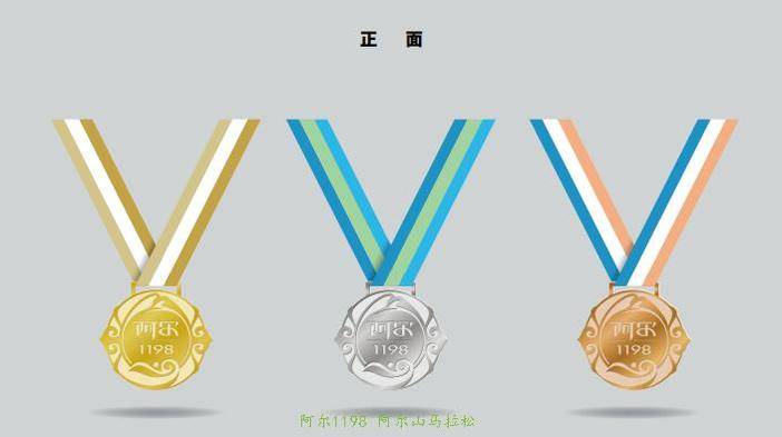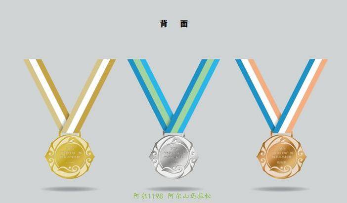 2024“阿尔1198”杯阿尔山马拉松奖牌以公元1198年成吉思汗讨伐翁吉刺部时命名阿尔山为历史背景。将“阿尔1198”置于图形中心位置;图形上方是起伏的山脉;图形下方是涓涓的天池水;图形左右借鉴融合了蒙古族特色图案。最终呈现了具有一个蒙古特色、山青水美的阿尔1198图形。
