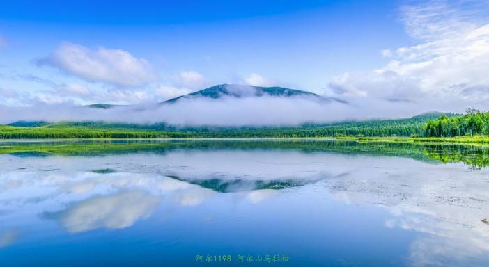 阿尔山的湖泊清澈如镜,宛如镶嵌在群山之间的宝石,闪烁着迷人的光芒。湖面波光粼粼,倒映着蓝天白云和周围的山峦,构成了一幅绝美的画卷。湖边的水草摇曳生姿,给湖泊增添了几分生机和活力。